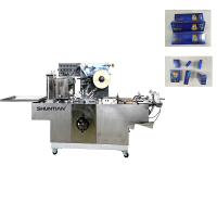机型介绍 Models introduce ST- T260/ST-T280型机械是全自动透明膜三维包装机械,俗称烟包机 以BOPP膜或PVC为包装材料, 将被包装物形成三维六面体折叠封包的单包设备。广泛用于药品、 食品、 美容日化用品、 农副土特产品、 保健品 玩具文教用品、礼盒产品等多个行业产品的透明膜三维贴体包装( 包装效果与香烟相同)。具备自动送料、 裹包、 折叠、 侧封、 端封、 上下整形、 计数、 并自动粘贴防伪易拉线等功能,易拉线可印上各种颜色的企业标志或名称,并可带防伪。本机配备U型切刀,包装的物品有易拉口 ,容易拆包 。环保节能 , 包装材料成本低 ,包装效果平整美观,全密封包装防尘、 防潮、 防伪、 防污染。本设备可作为单机独立使用,也可前连接装盒机后联接集盒包装机,打码等相关配套联机等设备。 适用范围 Scope of application 该系列机型应用于药品、 食品、 美容日化用品、 农副土特产品、 保健品、 玩具文教用品、礼盒产品等多个行业的盒子盒型物品的单件透明膜三维裹包。如盒装扑克盒装安全套、 盒装药品、 盒装染发 剂、 盒子香烟、 盒装香水、 盒装蚊香等。 技术特点 Technical characteristics 本设备采取的是机械传动为主,气动为辅的运作原理,配备有齿轮链条和无极变频下膜系统,运行稳定,包装速度快,操作简单等特点,链条齿轮机械式平推进盒结构, 有效避免卡盒甩盒等故障。整机结构紧凑, 占用空间小,重量轻;适用范围广,适应性强, 一台机器即可完成多种规格盒子的包装,操作简单,维护便捷 。